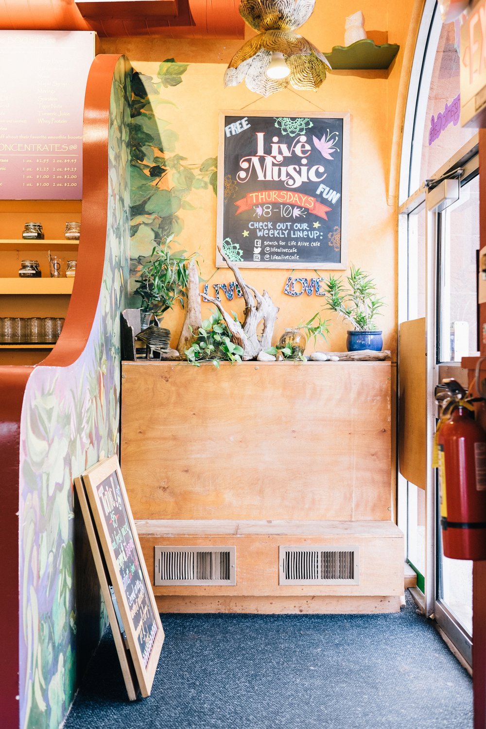 Life alive is a vibey vegetarian coffee shop serving good drinks with alleged health benefits.