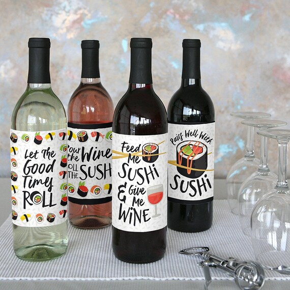Let S Roll Sushi Japanese Party Wine Bottle Labels For Etsy